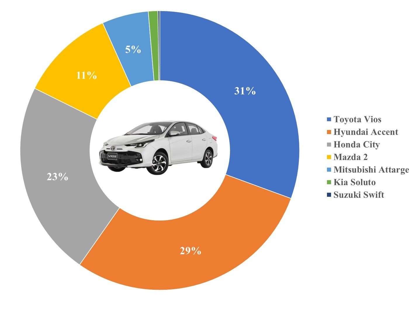 Toyota Vios thống trị phân khúc sedan hạng B năm 2024 với 14.210 chiếc bán ra, tăng 5,1% so với năm 2023. Điểm tựa tạo nên sức bật doanh số của mẫu sedan nhà Honda đến từ hỗ trợ ưu đãi lệ phí trước bạ của Chính phủ và chương trình ưu đãi, giảm giá từ hãng và đại lý.