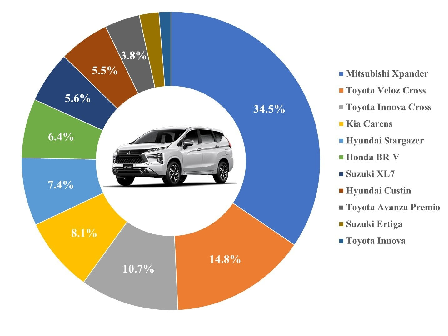 Kết thúc năm 2024, Mitsubishi Xpander bán ra tổng cộng 19.498 chiếc - tiếp tục thống trị phân khúc MPV. Đáng chú ý, doanh số của mẫu MPV này còn tạo ra sự cách biệt lớn với những đối thủ khi cao gấp 2,3 lần Toyota Veloz Cross (8.341 chiếc) hoặc gấp 2,9 lần Kia Carnival (6.560 chiếc).