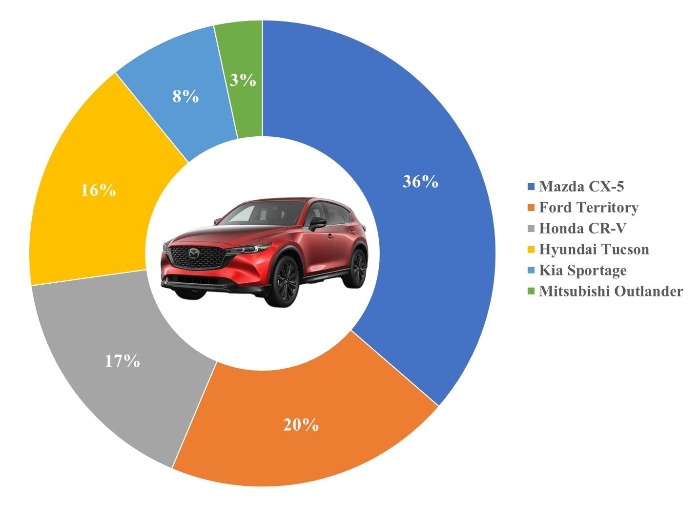 Kết thúc năm 2024, Mazda CX-5 trở thành mẫu xe gầm cao bán chạy nhất phân khúc khi ghi nhận doanh số 14.781 chiếc. Kết quả này dù giảm hơn 2.000 chiếc so với cùng kỳ năm ngoái nhưng bỏ xa đáng kể những đối thủ cùng phân khúc.