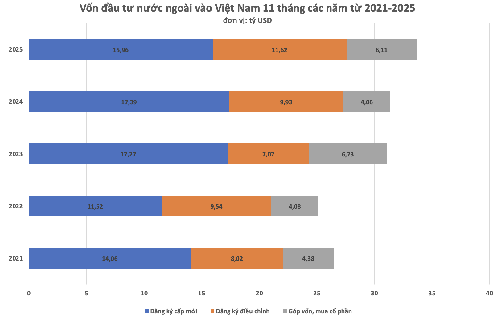 Việt Nam đang chứng kiến một kỷ lục mới trong việc thu hút vốn đầu tư trực tiếp nước ngoài (FDI) với con số giải ngân đạt 23,6 tỷ USD trong 11 tháng đầu năm 2025. Đây là mức cao nhất trong vòng 5 năm qua, cho thấy niềm tin mạnh mẽ của các nhà đầu tư nước ngoài vào sự ổn định và triển vọng tăng trưởng của nền kinh tế Việt Nam.