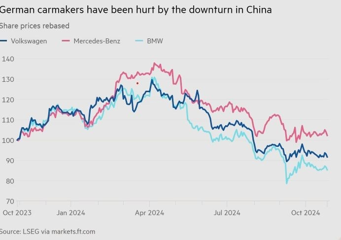 Tờ FT nhận định ngành công nghiệp ô tô Châu Âu đang đối mặt với một cơn bão chưa từng có. Nhu cầu xe hơi giảm cả trong và ngoài nước còn tiến trình chuyển đổi từ xe xăng sang ô tô điện thì lại có quá nhiều rủi ro với sự cạnh tranh gay gắt của Trung Quốc.