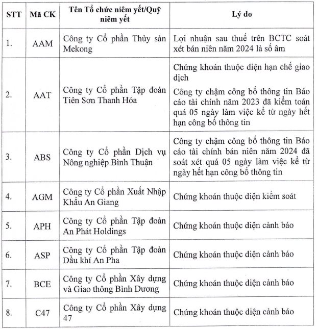 Đáng chú ý, kết quả kinh doanh lao dốc cũng khiến nhiều mã cổ phiếu bị cắt margin trong quý 1, có thể kể tới như AAM, CMX, D2D, DQC, EVE, FCM, HAS, HID, HNA, ITD, LDG, NT2, PGV, QCG, SBV, SGR, SMA, SPM, STK, TLH, TMT, TTE, VPH.… Nguyên nhân đều do lợi nhuận của cổ đông công ty mẹ/LNST trên BCTC hợp nhất soát xét bán niên năm 2024 là số âm.