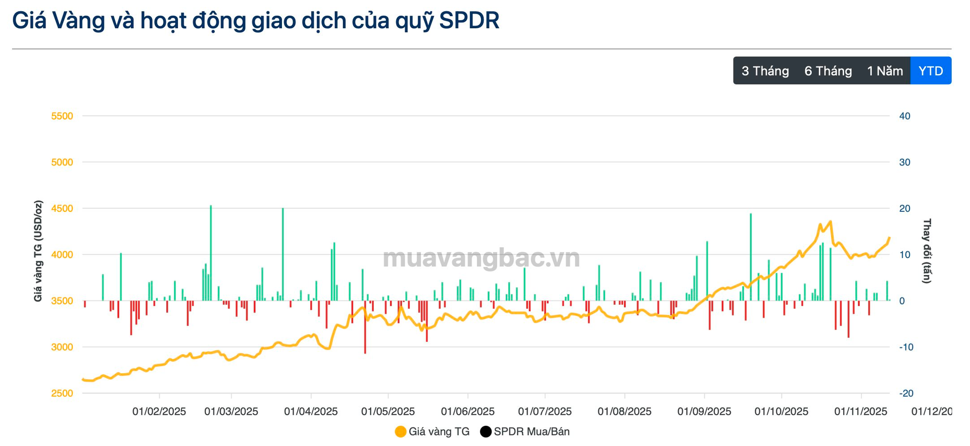 Từ đầu năm, các quỹ ETF vàng đã hút vốn rất mạnh để mua vàng. Chỉ riêng quỹ vàng lớn nhất thế giới SPDR Gold Shares đã hút ròng khoảng 10 tỷ USD để mua thêm khoảng 170 tấn vàng từ đầu năm, ghi nhận mức cao nhất kể từ năm 2020. Xu hướng này phản ánh niềm tin mạnh mẽ của nhà đầu tư vào vàng như một “nơi trú ẩn an toàn” giữa thế giới đầy biến động.