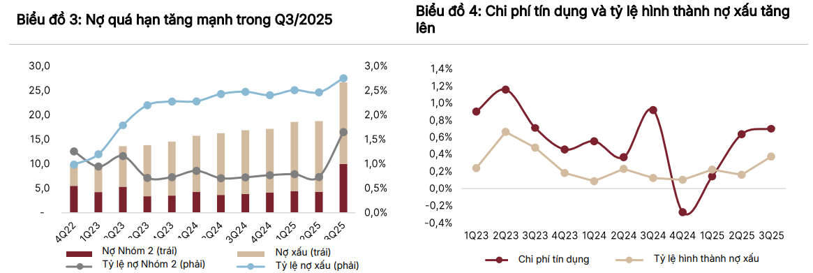 Riêng nợ xấu nhóm 5 của ngân hàng đã tăng từ mức 4.900 tỷ đồng vào cuối năm 2023, lên 8.869 tỷ đồng vào cuối năm 2024 và lên 11.511 tỷ đồng tính đến cuối quý III/2025.