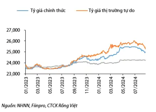 Trong báo cáo mới công bố, các chuyên gia phân tích tại công ty chứng khoán Rồng Việt (VDSC) cho rằng, áp lực về nhu cầu USD tăng trở lại trong cuối quý III và đầu quý IV cũng sẽ không gây áp lực đến triển vọng tỷ giá. Theo đó, tỷ giá USD/VND cuối năm 2024 có thể dao động quanh mức 25.000 đồng/USD như hiện tại, tương đương tăng khoảng 3% so với cuối năm ngoái.