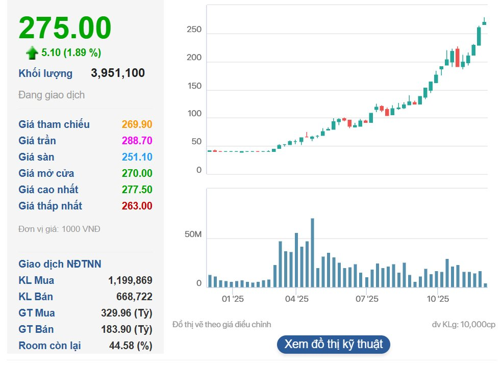 Phiên giao dịch ngày 2/12, cổ phiếu VIC của Vingroup đã tăng 1,89% lên mức 275.000 đồng/cp.