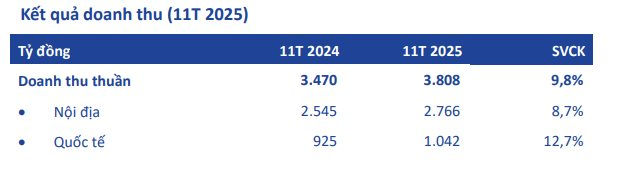 Kết quả này cho thấy đà phục hồi khá rõ nét trong hoạt động kinh doanh của doanh nghiệp, đặc biệt trong tháng 11, với động lực tăng trưởng nổi bật đến từ mảng quốc tế, đồng thời phản ánh hiệu quả trong công tác điều hành và khả năng thích ứng của Công ty trong bối cảnh môi trường kinh doanh vẫn còn nhiều biến động.