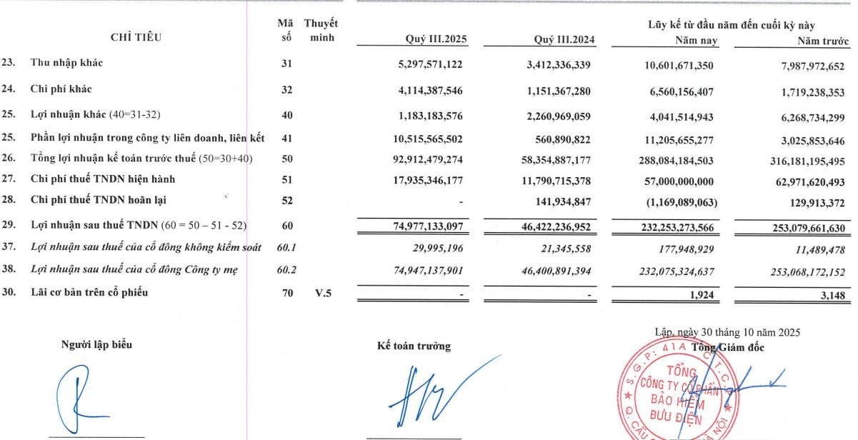 Lũy kế 9 tháng đầu năm 2025, PTI ghi nhận doanh thu thuần từ hoạt động kinh doanh bảo hiểm gần 2.414 tỷ đồng, giảm 18,4% so với 9 tháng đầu năm 2024; lợi nhuận sau thuế thu nhập doanh nghiệp đạt gần 232,3 tỷ đồng, giảm 8,2%.