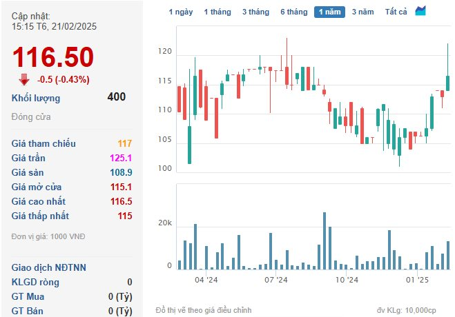 Trên thị trường chứng khoán, kết phiên 21/02, giá cổ phiếu PDN ở mức 116.500 đồng/cổ phiếu, giảm 0,43% so với phiên trước, khối lượng cổ phiếu giao dịch khớp lệnh đạt 400 đơn vị.