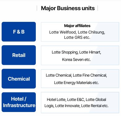 Để hoàn thiện hệ sinh thái kinh doanh khép kín, Lotte còn có Lotte Finance (tài chính tiêu dùng) vừa chính thức được Ngân hàng Nhà nước phê duyệt tăng tổng vốn điều lệ lên hơn 4.912 tỷ đồng; Lotte Rental (cho thuê xe) và Lotte Data Innovation (dịch vụ CNTT), đóng vai trò là các mắt xích hỗ trợ, cung cấp dịch vụ cho tập đoàn và khách hàng