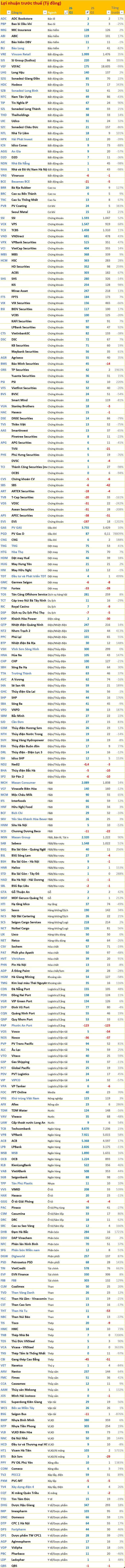 Vincom Retail (VRE) báo lãi quý 1 đạt 1.999 tỷ đồng, tăng trưởng 35%. Digiworld (DGW) gây ấn tượng mạnh với mức tăng trưởng 87%, lợi nhuận đạt 257 tỷ đồng.