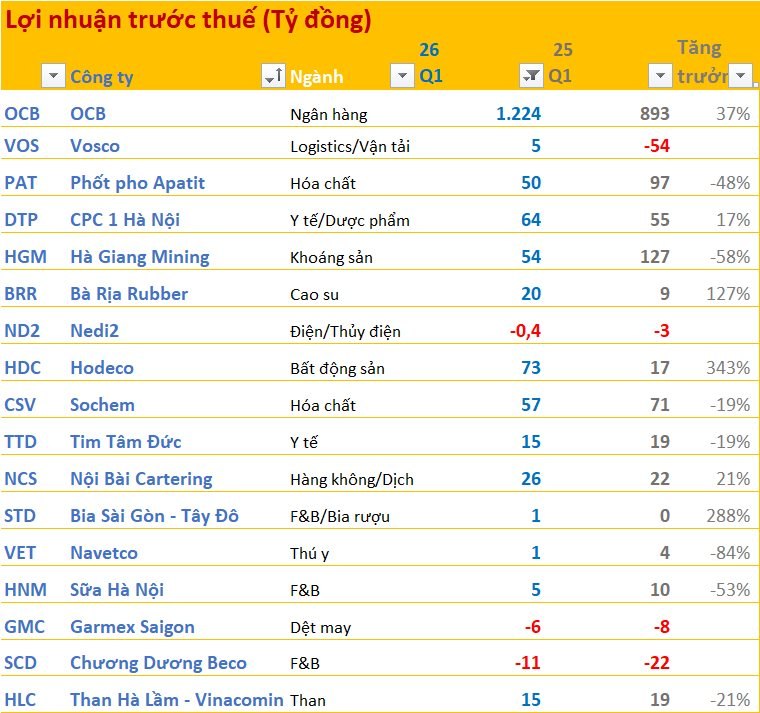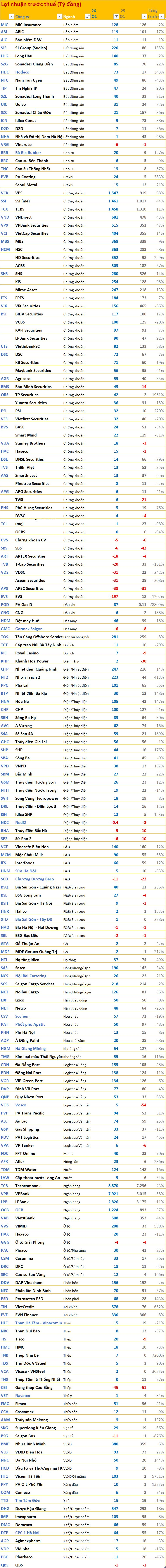 Các doanh nghiệp đã công bố BCTC quý 1/2026 sắp xếp theo ngành: