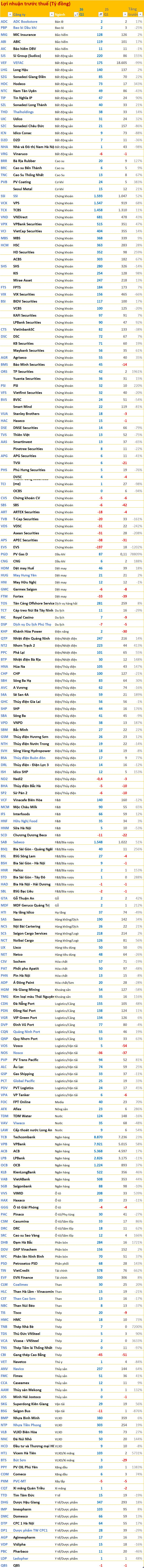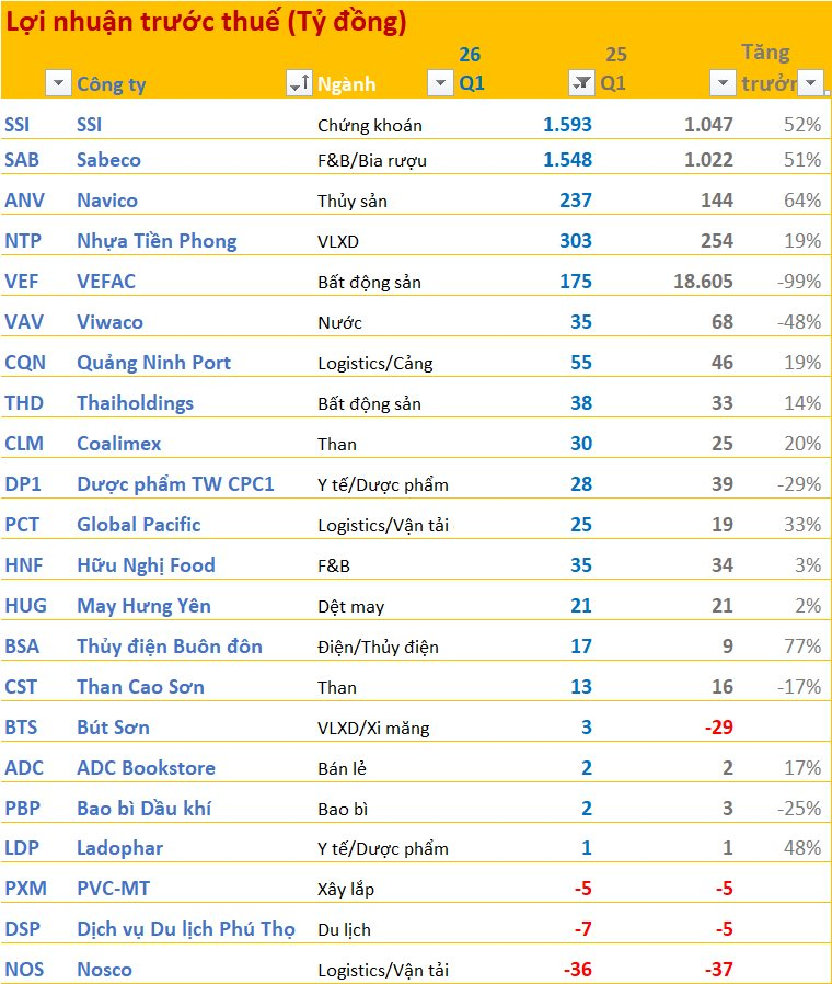 Các doanh nghiệp đã công bố BCTC quý 1/2026 sắp xếp theo ngành: