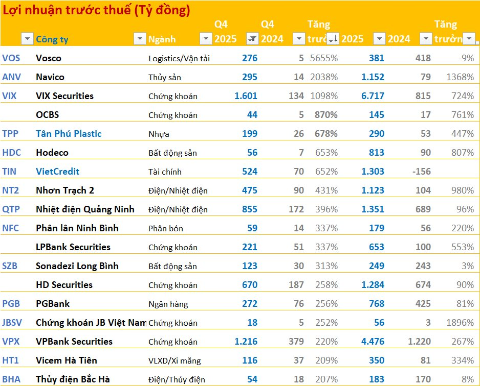 Những doanh nghiệp tăng trưởng tốt nhất quý 4/2025