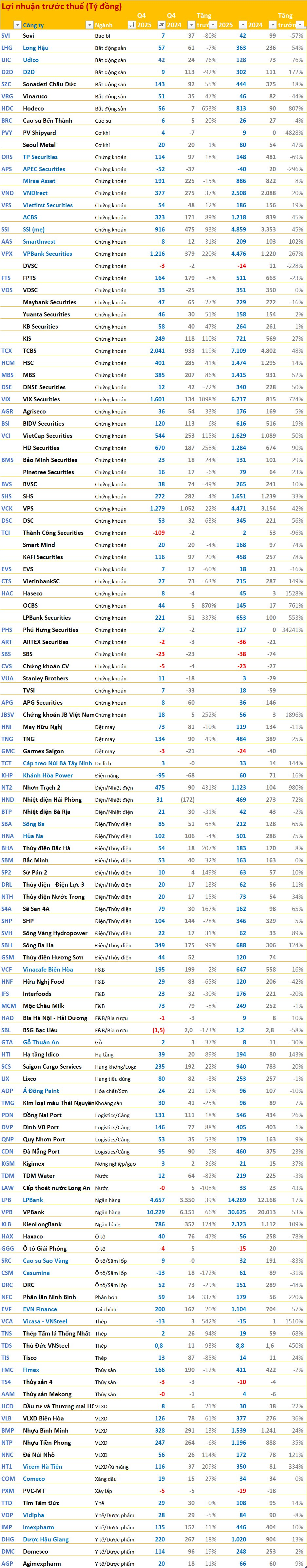 HT1 đã bứt phá mạnh mẽ trong quý 4 với lợi nhuận đạt 116 tỷ đồng, tăng trưởng tới 209%. Lũy kế cả năm 2025, doanh nghiệp này đạt 350 tỷ đồng lãi trước thuế, tăng trưởng 334%.