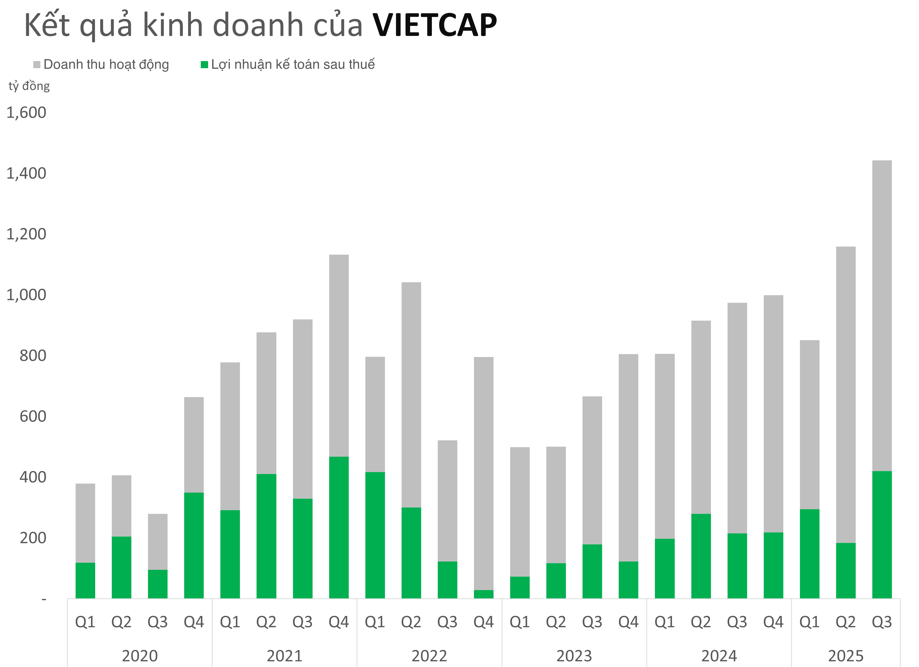 Trong quý III/2025, Công ty lãi hơn 420 tỷ đồng, gấp đôi cùng kỳ; lũy kế 9 tháng đạt gần 900 tỷ đồng và hoàn thành 76% kế hoạch năm. Quy mô cho vay margin lập đỉnh mới, gần 14.000 tỷ đồng.