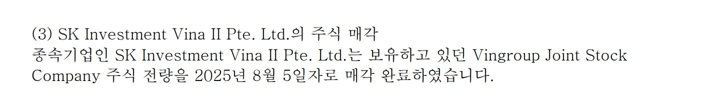 Trong đó, SK Group cho biết công ty con SK Investment Vina II Pte. Ltd đã bán hết cổ phiếu Vingroup vào ngày 5/8/2025.