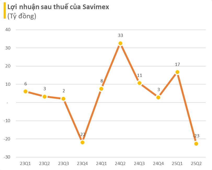 Do chi phí tài chính tăng cao, quý 2/2025, Savimex ghi nhận lỗ sau thuế gần 23 tỷ đồng, trong khi cùng kỳ năm 2024 lãi 33 tỷ đồng.