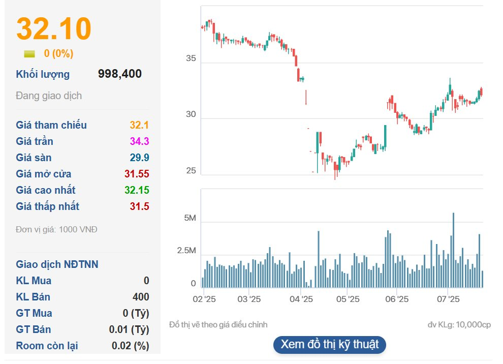 Vào ngày 30/6/2025, TCM có giá 31.700 đồng - giảm 27% so với mặt bằng 43.000 đồng (giá điều chỉnh sau khi trả cổ tức) tại cuối năm 2024.