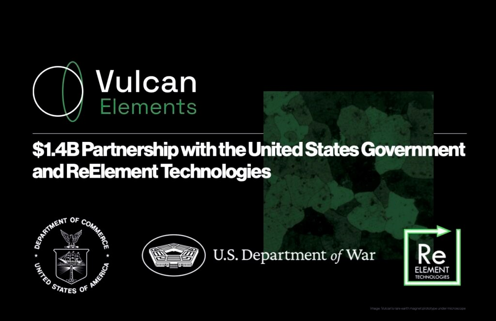 Liên danh do Vulcan Elements đứng đầu sẽ nhận khoản vay 620 triệu USD từ Văn phòng Vốn Chiến lược (OSC) thuộc Bộ Quốc phòng Mỹ, nhằm xây dựng và vận hành một cơ sở sản xuất nam châm tại Mỹ có năng lực sản xuất 10.000 tấn nam châm mỗi năm. Bộ Thương mại Mỹ đóng góp 50 triệu USD, còn các nhà đầu tư tư nhân góp 550 triệu USD.