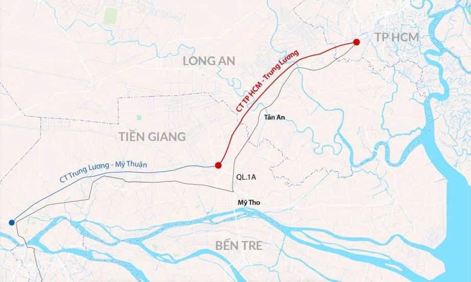 giao Chợ Đệm, huyện Bình Chánh (Tp.HCM); điểm cuối tại đầu cầu phía Bắc cầu Mỹ Thuận 2, huyện Cái Bè (tỉnh Tiền Giang). Thời gian chuẩn bị đầu tư và thực hiện dự án từ năm 2024-2028.