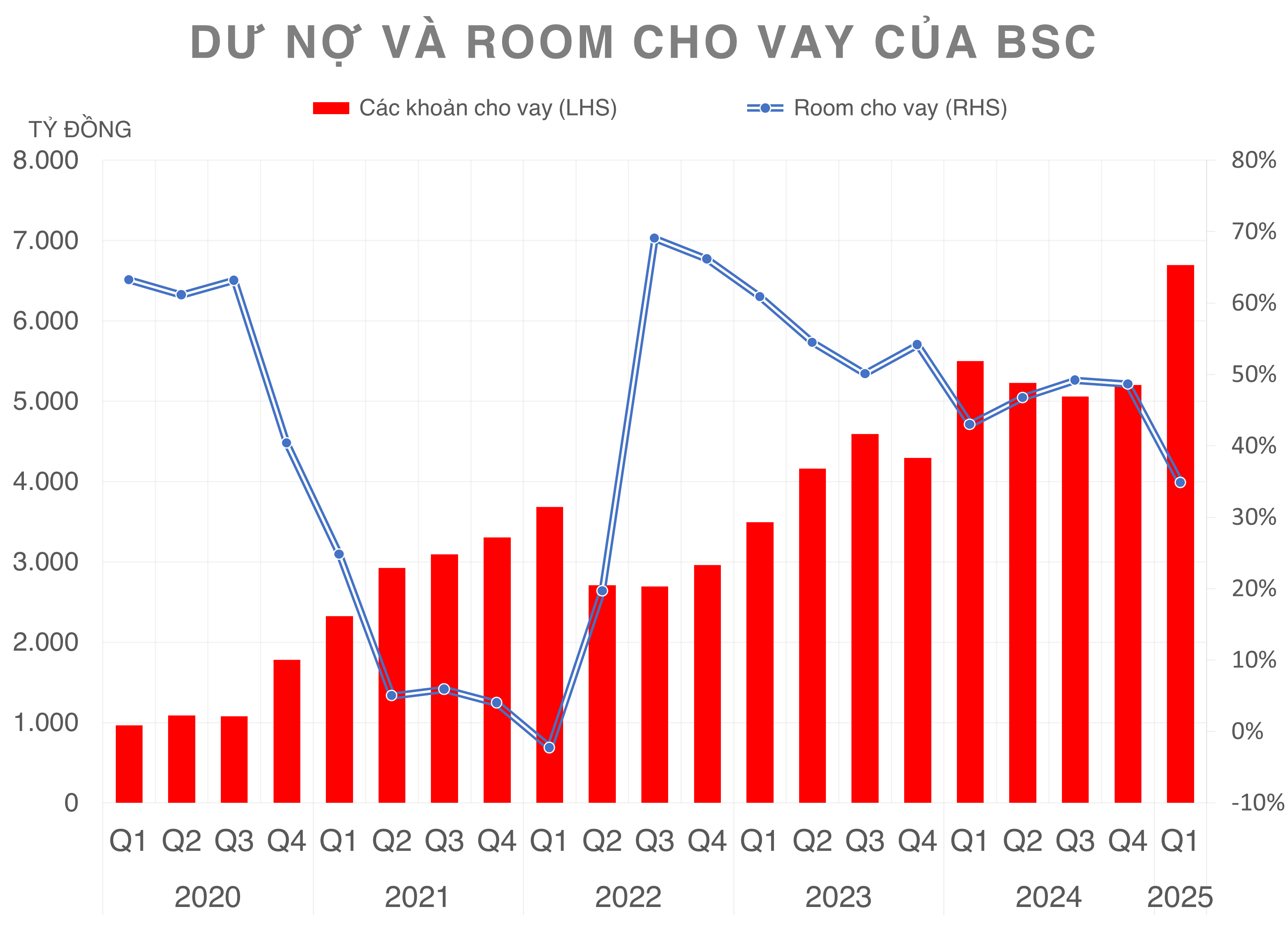 Đáng chú ý, dư nợ cho vay của BSC cũng lập kỷ lục mới đạt gần 7.000 tỷ đồng tính đến ngày 31/3.