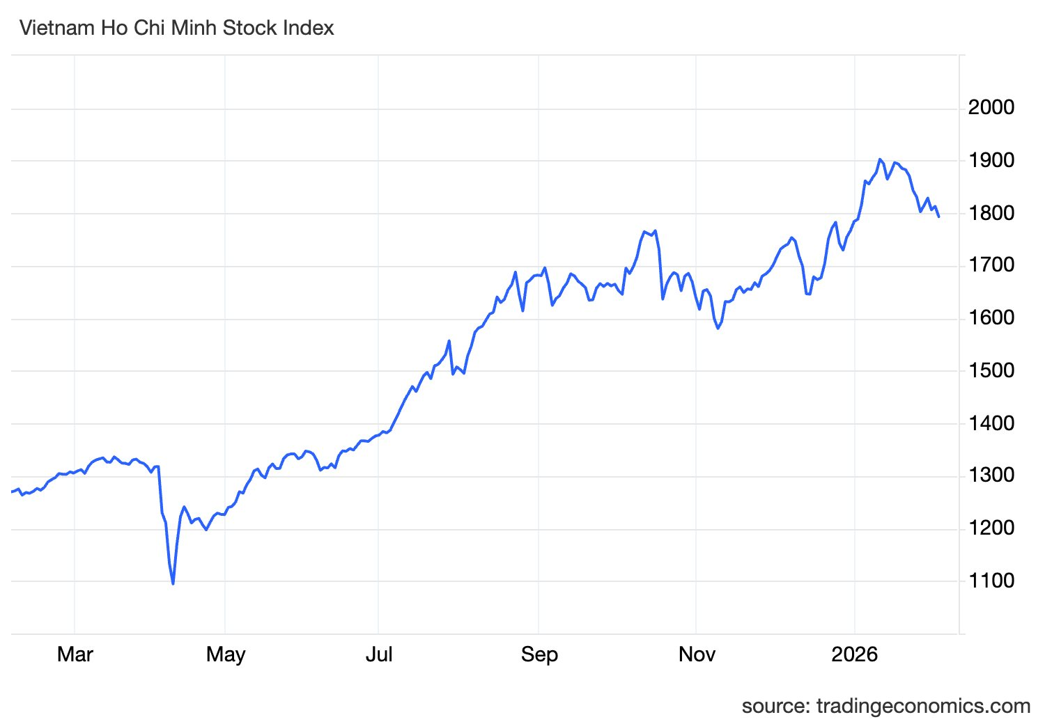 Thị trường chứng khoán Việt Nam khởi đầu năm 2026 đầy hưng phấn khi VN-Index có lần đầu vượt 1.900 điểm vào giữa tháng 1. Tuy nhiên, thành quả đã nhanh chóng bị thổi bay sau đó khi áo lực chốt lời gia tăng. VN-Index đóng cửa phiên 4/2 chỉ còn nhỉnh hơn vỏn vẹn 7 điểm so với mức kết năm 2025.