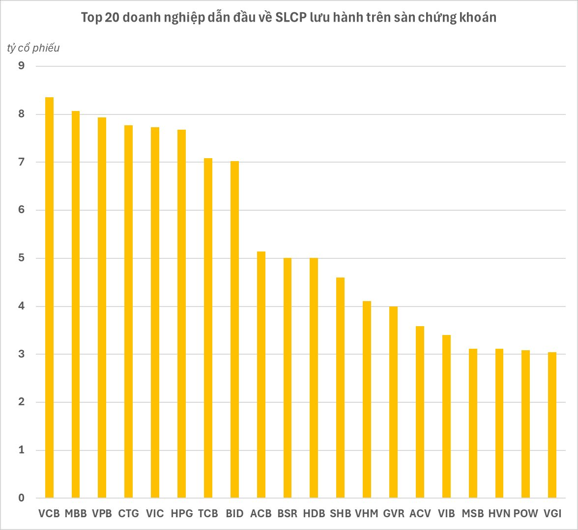 Việc lượng cổ phiếu lưu hành đạt quy mô khổng lồ này không chỉ phản ánh quá trình tăng vốn liên tục thông qua chia cổ tức bằng cổ phiếu, phát hành riêng lẻ, mà còn cho thấy tham vọng mở rộng quy mô tài chính của các doanh nghiệp đầu ngành.