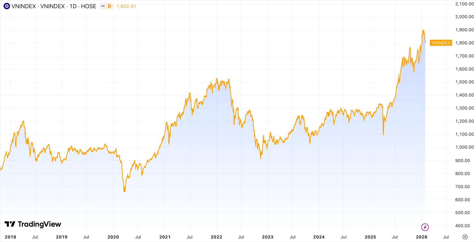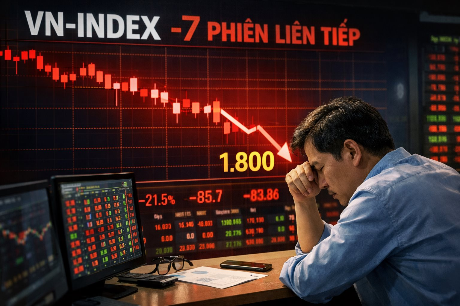 Thị trường chứng khoán Việt Nam đang trong điều chỉnh sau khi áp sát vùng đỉnh gần 1.900 điểm vào đầu tuần trước. VN-Index mất gần 100 điểm sau 7 phiên giảm liên tiếp qua đó lùi về quanh 1.800 điểm. Đây là chuỗi giảm điểm liên tiếp dài nhất trong vòng hơn 7 năm trở lại đây, kể từ cuối tháng 12/2018.