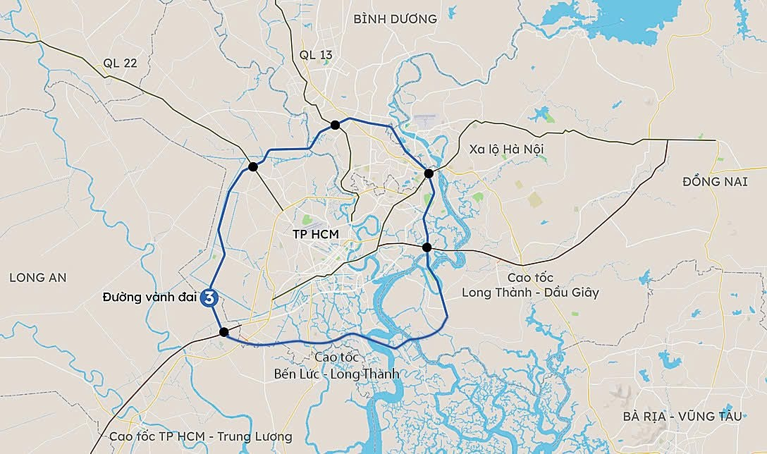 Dự án đường Vành đai 3 Tp.HCM là công trình giao thông trọng điểm, đóng vai trò quan trọng trong việc kết nối vùng. Dự án có tổng chiều dài hơn 76 km, đi qua địa phận Tp.HCM, Bình Dương, Đồng Nai và Long An. Hiện chính quyền các địa phương đang khẩn trương thi công, tăng tốc đẩy tiến độ dự án về đích.
