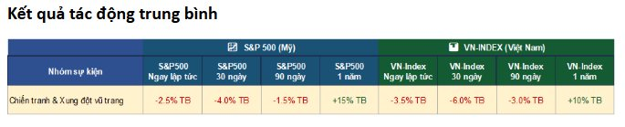 Theo ông Nguyễn Thế Minh, Giám đốc Khối Nghiên cứu và Phát triển khách hàng cá nhân tại Chứng khoán Yuanta Việt Nam, thống kê lịch sử cho thấy các sự kiện xung đột địa chính trị thường gây phản ứng tiêu cực trong ngắn hạn đối với thị trường chứng khoán, nhưng tác động dài hạn nhìn chung khá hạn chế.