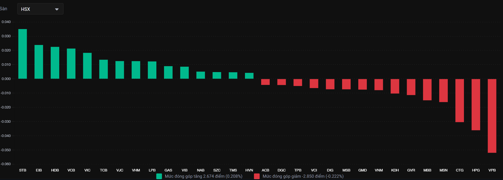 Với dòng tiền chưa thể cải thiện, thị trường vẫn tiếp tục lệ thuộc vào vận động của cổ phiếu lớn đặc biệt là nhóm Ngân hàng. Thực tế, một số mã Ngân hàng như ACB (-0,2%), MBB (-0,6%) đã có khoảnh khắc lập kỷ lục giá mới còn STB (+2,7%) cũng có lúc tiến gần hơn tới mức giá thời đại.