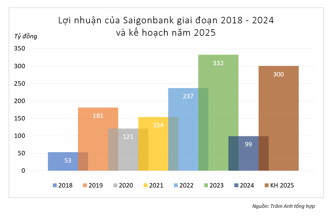 Mặc dù năm 2024 được nhận định là một năm không mấy khả quan của Saigonbank khi lợi nhuận trước thuế chỉ đạt 99 tỷ đồng, giảm 70% so với cùng kỳ, ngân hàng vẫn giữ vững mục tiêu lợi nhuận trước thuế năm 2025 đạt 300 tỷ đồng, gấp 3 lần so với kết quả năm 2024.
