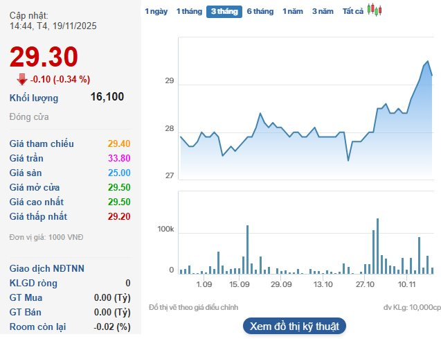 Trên sàn chứng khoán, cổ phiếu PPH đóng cửa phiên 19/11 tại mốc 29.300 đồng/cp.