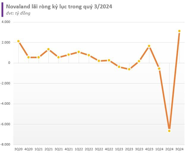 Theo BCTC hợp nhất quý 3 mới công bố, Novaland ghi nhận doanh thu thuần hợp nhất 2.010 tỷ đồng, gần gấp đôi cùng kỳ. Doanh thu hoạt động tài chính cũng tăng vọt gấp 2,4 lần cùng kỳ 2023, đạt gần 3.900 tỷ đồng.