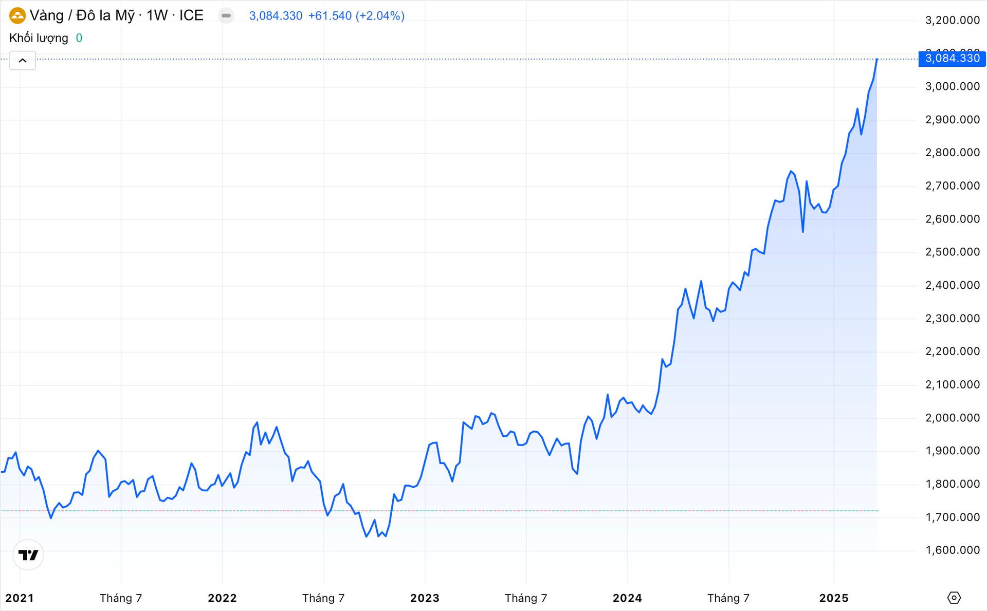 Trên thị trường thế giới, giá vàng giao ngay ở ngưỡng 3.067 USD/ounce, tăng 45 USD so với ngày hôm qua. Thậm chí, Goldman Sachs nâng dự báo giá vàng cuối năm từ 3.100 USD lên 3.300 USD, nhờ nhu cầu mạnh hơn kỳ vọng từ các quỹ ETF và ngân hàng trung ương.