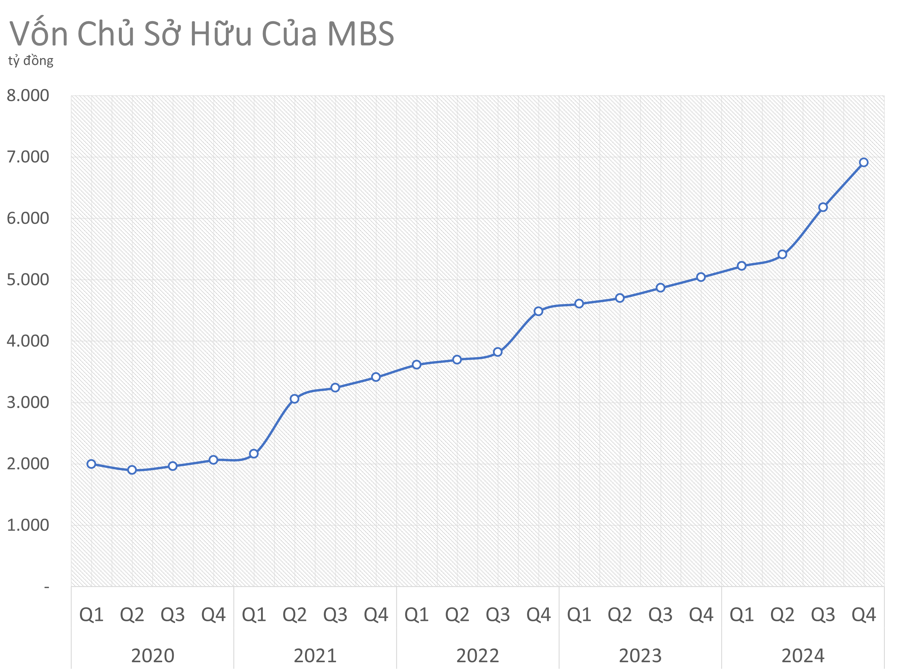 Sau các đợt phát hành cho cổ đông hiện hữu và nhà đầu tư chuyên nghiệp, vốn chủ sở hữu của MBS cuối năm 2024 đạt hơn 6.900 tỷ đồng. Trong khi, MBS cũng đang vay ngắn hạn và vay trái phiếu với tổng số dư hơn 14.000 tỷ đồng.