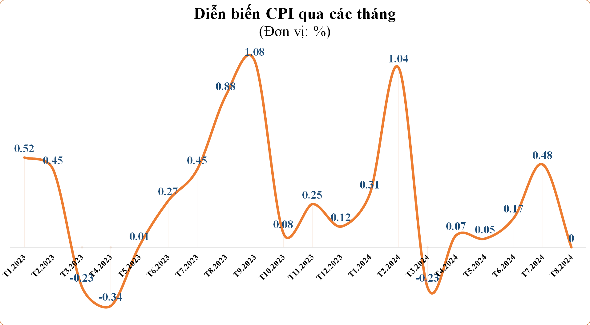 Lạm phát cơ bản tháng 8/2024 tăng 0,24% so với tháng trước, tăng 2,53% so với cùng kỳ năm trước.