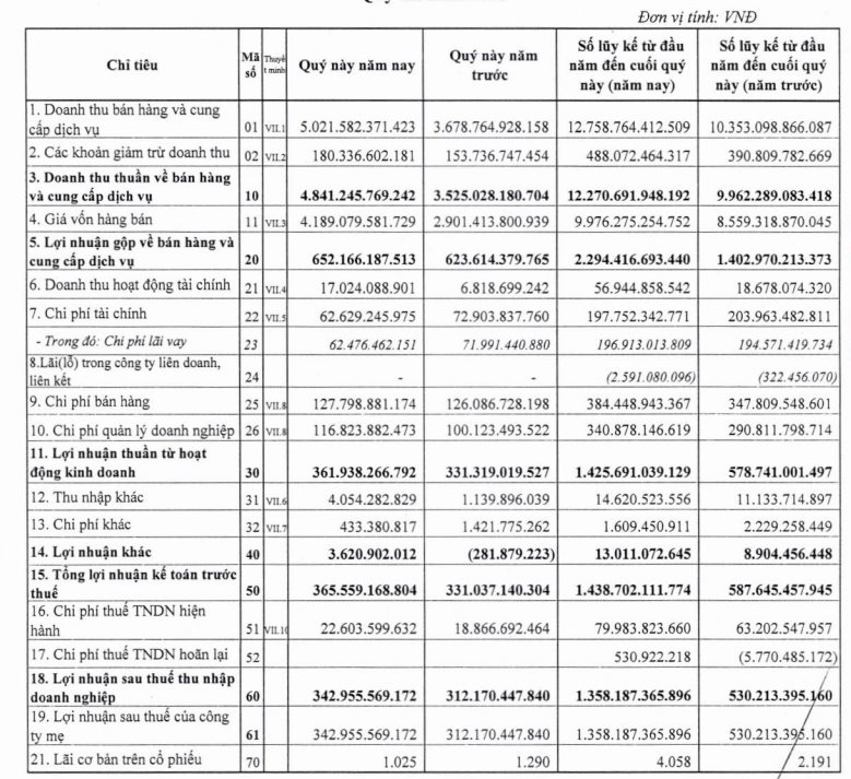 Kết quả công ty báo lãi sau thuế “khủng” đạt 1.358 tỷ đồng, tăng hơn 156% so với cùng kỳ năm trước (530 tỷ đồng).