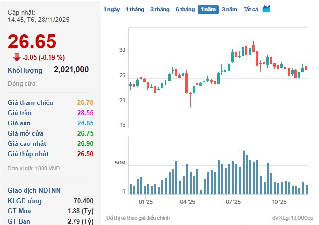 Trên thị trường chứng khoán, kết phiên 29/11, giá cổ phiếu DBC ở mức 26.650 đồng/cổ phiếu, giảm 0,19% so với phiên trước, khối lượng cổ phiếu giao dịch khớp lệnh đạt hơn 2 triệu đơn vị.