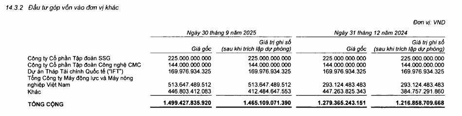 Trong đó, quy mô danh mục đầu tư tài chính ngắn hạn và dài hạn của tập đoàn đạt 247.176 tỷ đồng (gần 9,4 tỷ USD). Con số này ghi nhận mức tăng 15.633 tỷ đồng, tương đương 6,75% so với mức 231.543 tỷ đồng ghi nhận vào đầu năm.