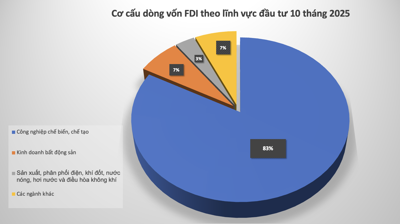 Năm 2024, giải ngân FDI đã đạt mức kỷ lục khoảng 25,35 tỷ USD, 2025 tiếp tục lập kỷ lục mới trong 10 tháng, cho thấy cải cách thủ tục, hạ tầng, “hậu kiểm hơn tiền kiểm” bắt đầu chuyển thành kết quả thực tế trong dòng vốn giải ngân.