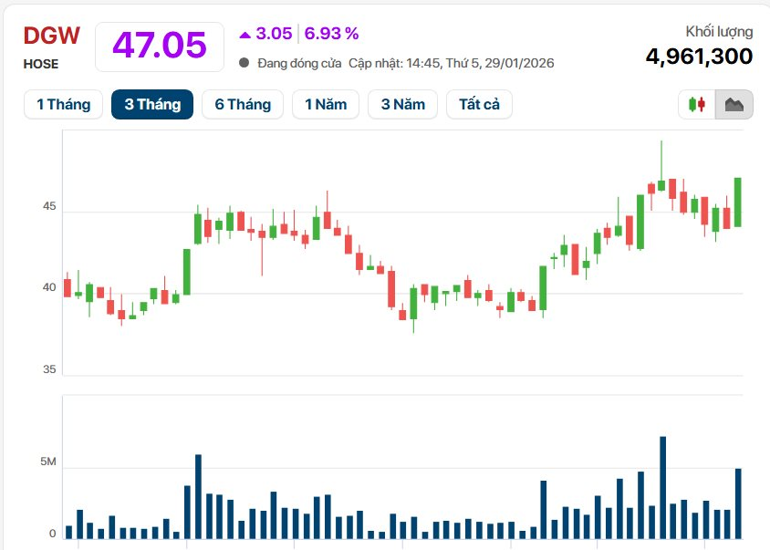 Dù vậy, phản ứng trước thông tin lợi nhuận kỷ lục, thị trường chứng khoán đã tạm thời "bỏ qua" các lo ngại về dòng tiền khi cổ phiếu DGW tăng kịch trần 6,93% ngay sau khi công bố báo cáo, đóng cửa tại mức 47.050 đồng/cp.