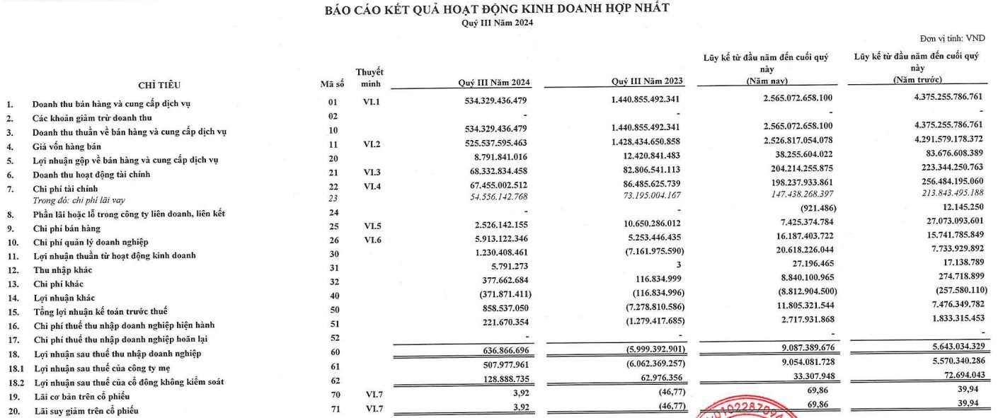 Theo báo cáo tài chính hợp nhất quý 3/2024, tổng tài sản của SHN tại ngày 30/9/2024 đạt gần 4.424 tỷ đồng, tiền mặt và tương đương tiền hơn 217 tỷ đồng, vốn chủ sở hữu hơn 1.595 tỷ đồng.