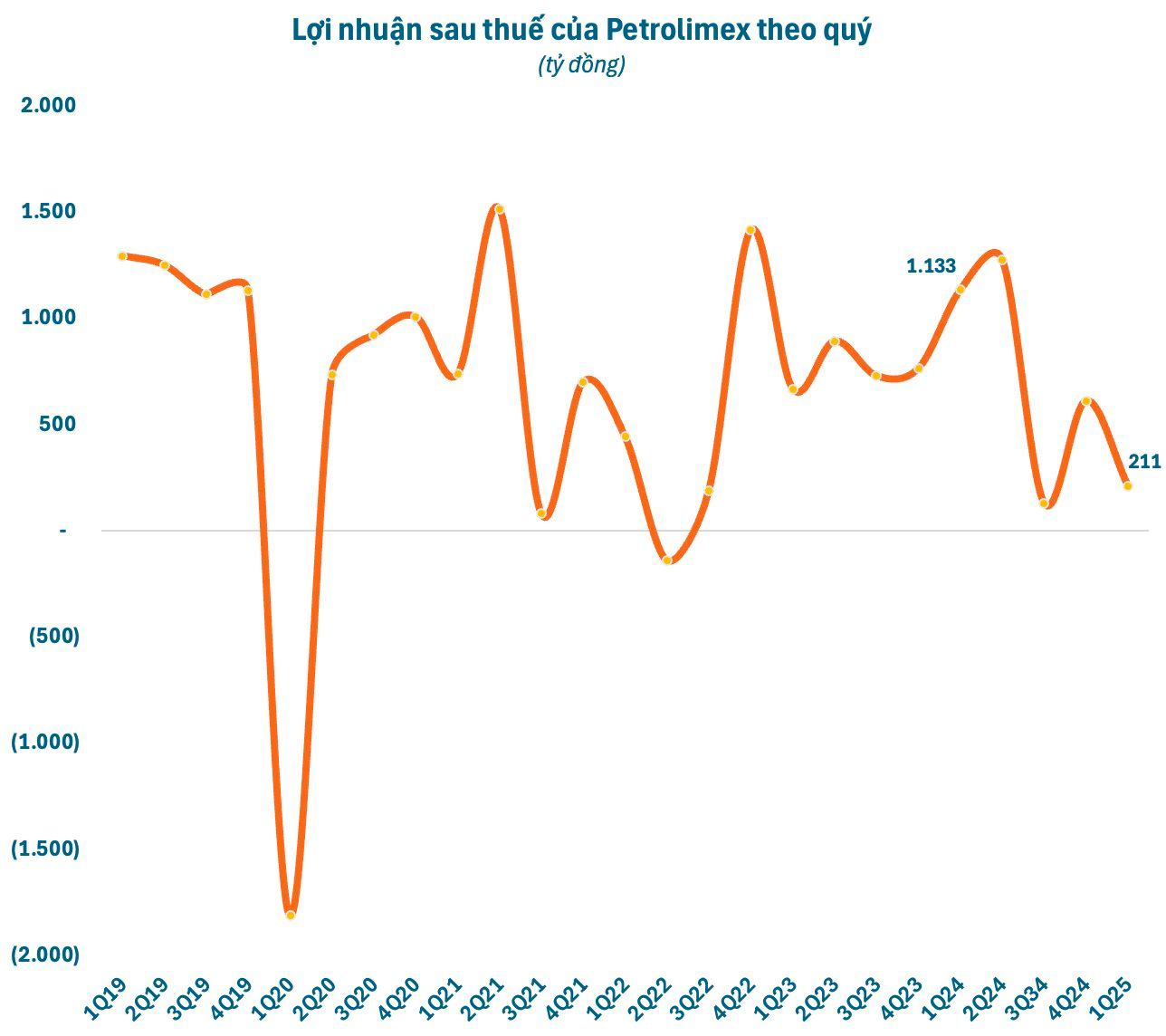 Doanh thu sụt giảm nhưng các chi phí bán hàng và quản lý doanh nghiệp lại tăng cao. Kết quả, Petrolimex lãi sau thuế 211 tỷ đồng, giảm đến 81% so với cùng kỳ 2024. Đây là mức lợi nhuận thấp thứ 2 trong vòng 10 quý trở lại đây của nhà bán lẻ xăng dầu này, chỉ cao hơn đôi chút so với quý 3/2024.
