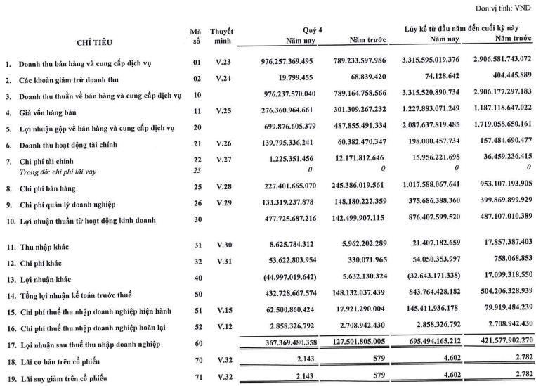 Khấu trừ chi phí khác, lợi nhuận sau thuế Sasco thu về 367 tỷ, gấp gần 3 lần so với quý 4/2024. Đây đồng thời là khoản lãi theo quý cao kỷ lục mà doanh nghiệp từng ghi nhận.