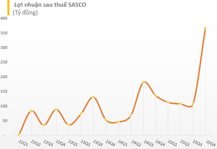 Lũy kế cả năm 2025, doanh thu thuần của Sasco đạt 3.316 tỷ đồng, lợi nhuận trước thuế đạt 844 tỷ đồng, tăng lần lượt 14% và 67% so với năm 2024, vượt 4% kế hoạch doanh thu và 52% kế hoạch lợi nhuận đề ra cho năm 2025.