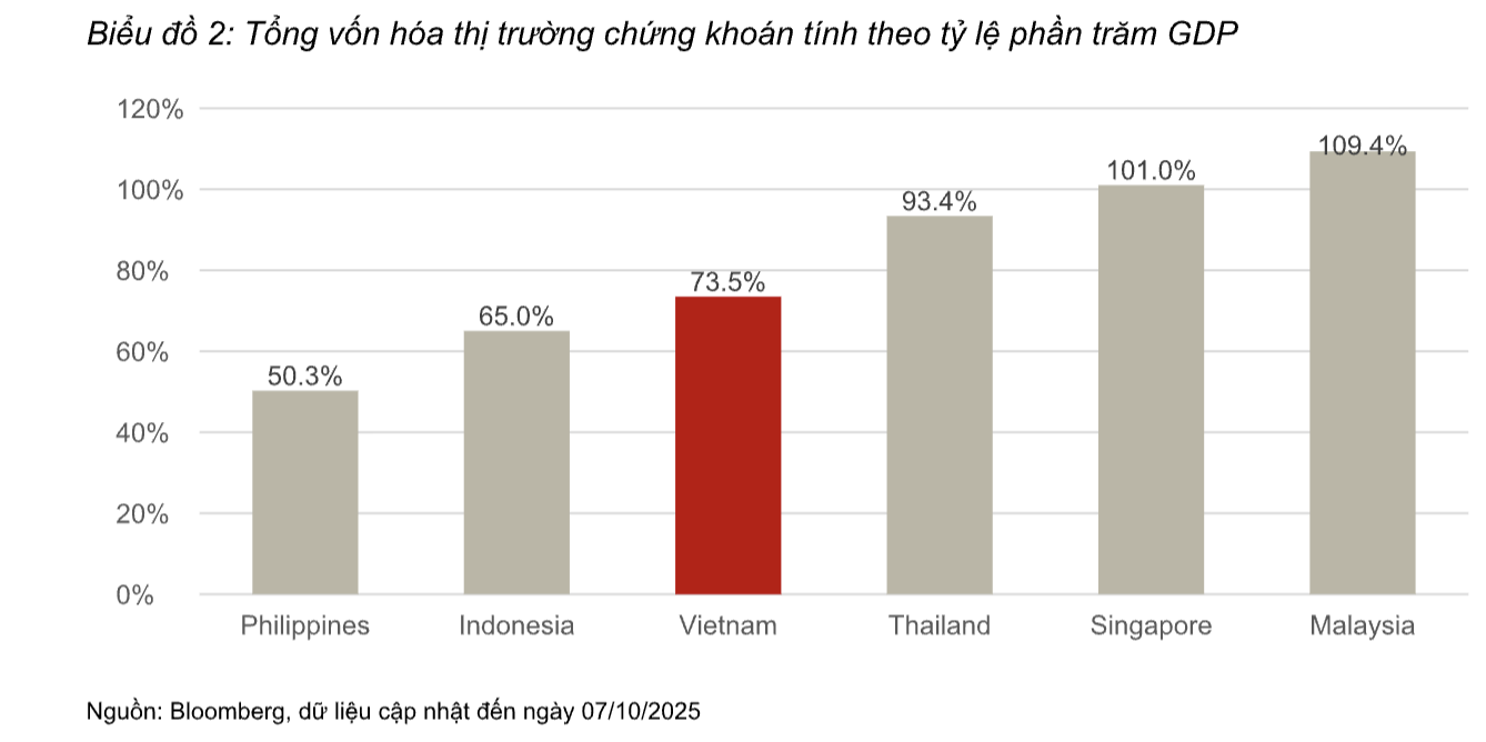 "Thành tựu này không phải là mục tiêu cuối cùng, mà là một bước khởi đầu mới, đặt ra những yêu cầu và thách thức cấp thiết cho sự phát triển tiếp theo — với mục tiêu chiến lược là mở rộng quy mô thị trường chứng khoán Việt Nam đạt mức 120% GDP vào năm 2030, so với mức hiện tại là 75% GDP ", nhóm phân tích nhận định.