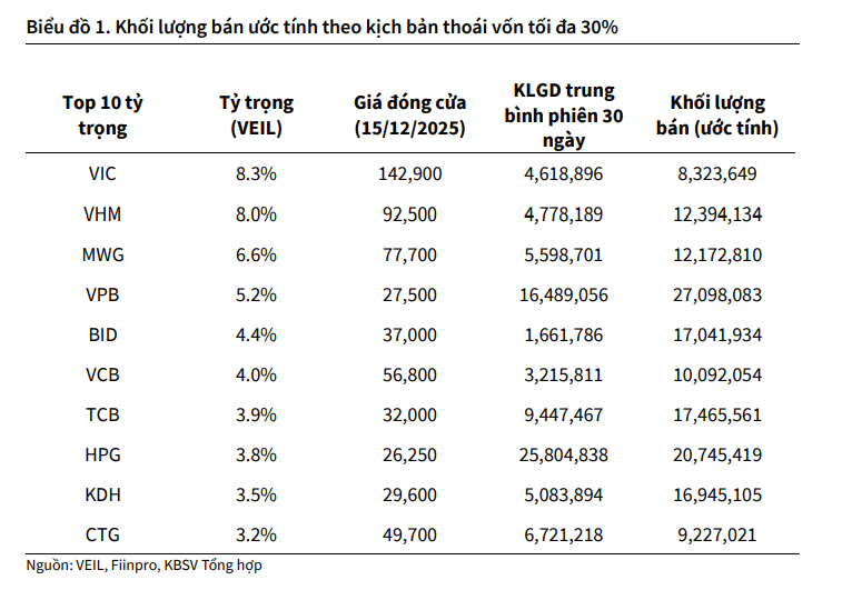 Bên cạnh đó, hiệu suất NAV của VEIL từ đầu năm đến cuối tháng 11/2025 đạt 20,66%, thấp hơn mức tăng 31,09% của VN-Index, khiến nhu cầu tái cơ cấu danh mục gia tăng.