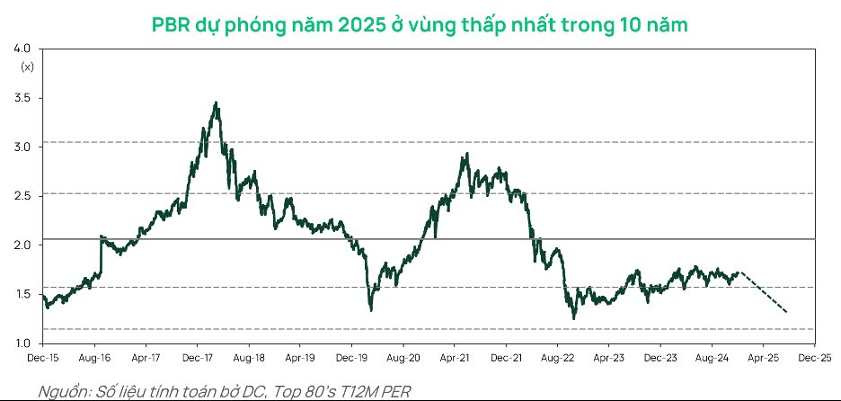 Thực tế, chứng khoán Việt Nam đang có mức định giá tương đối hấp dẫn. Chỉ số P/B của top 80 doanh nghiệp do Dragon Capital nghiên cứu đang ở vùng thấp nhất 10 năm. P/E của VN-Index đang ở quanh mức 14,x lần, thấp hơn nhiều so với con số 21,x lần khi chỉ số vượt 1.300 điểm vào tháng 5/2021. Điều này cho thấy định giá của thị trường đang ở mức hấp dẫn và rủi ro tạo đỉnh không cao.
